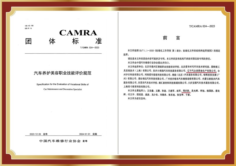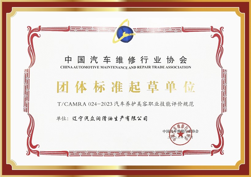 汽衆集團榮獲中國汽車(chē)維修行業協會團體标準起草單(dān)位及養護美容行業标準制定單(dān)位